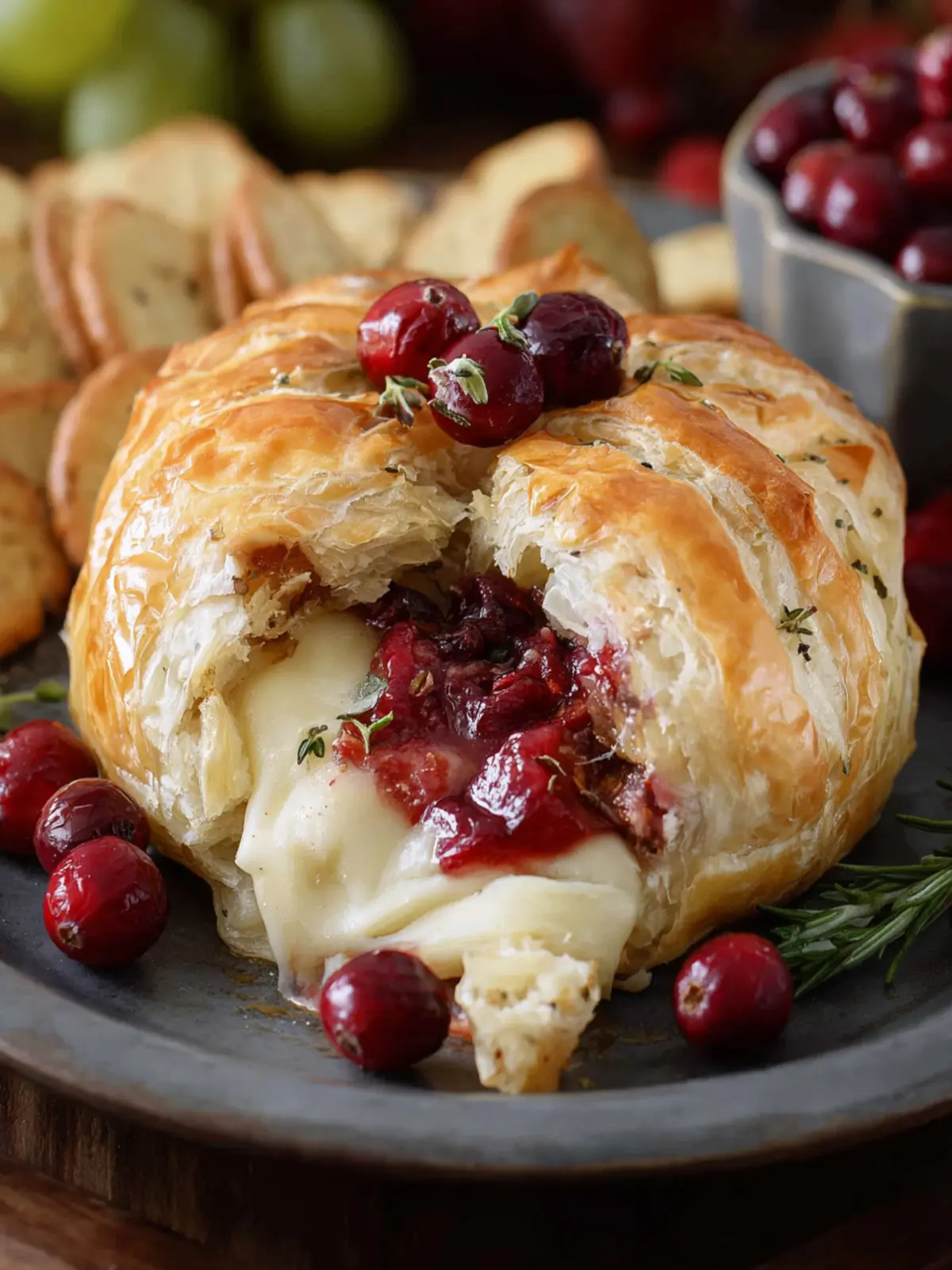 - Crackers: Opt for a variety of crackers, from savory to sweet. The contrast will complement the rich, buttery pastry and tart cranberry filling beautifully.