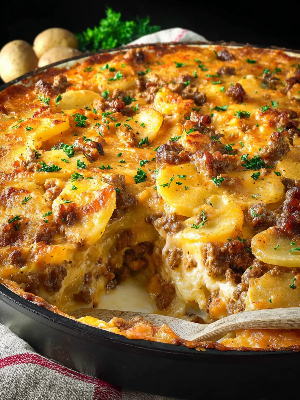 Family-Friendly Flavor: The combination of savory beef, melty cheese, and buttery potatoes appeals to everyone—from picky eaters to adventurous diners. This dish transforms even the pickiest of eaters into avid fans, all while keeping parents worry-free about nutrition.