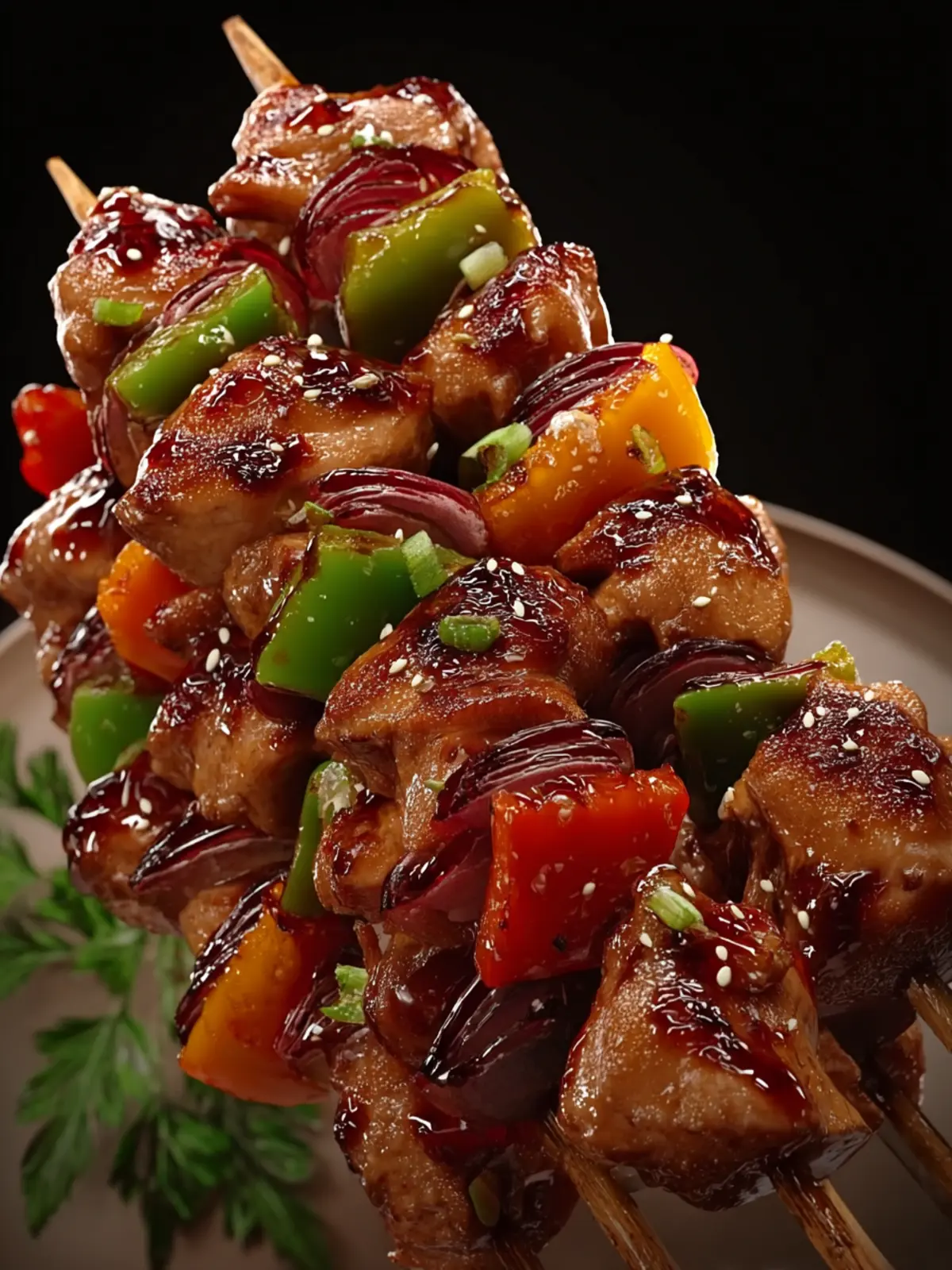 Delicious grilled chicken skewers marinated in a sweet and savory sauce.