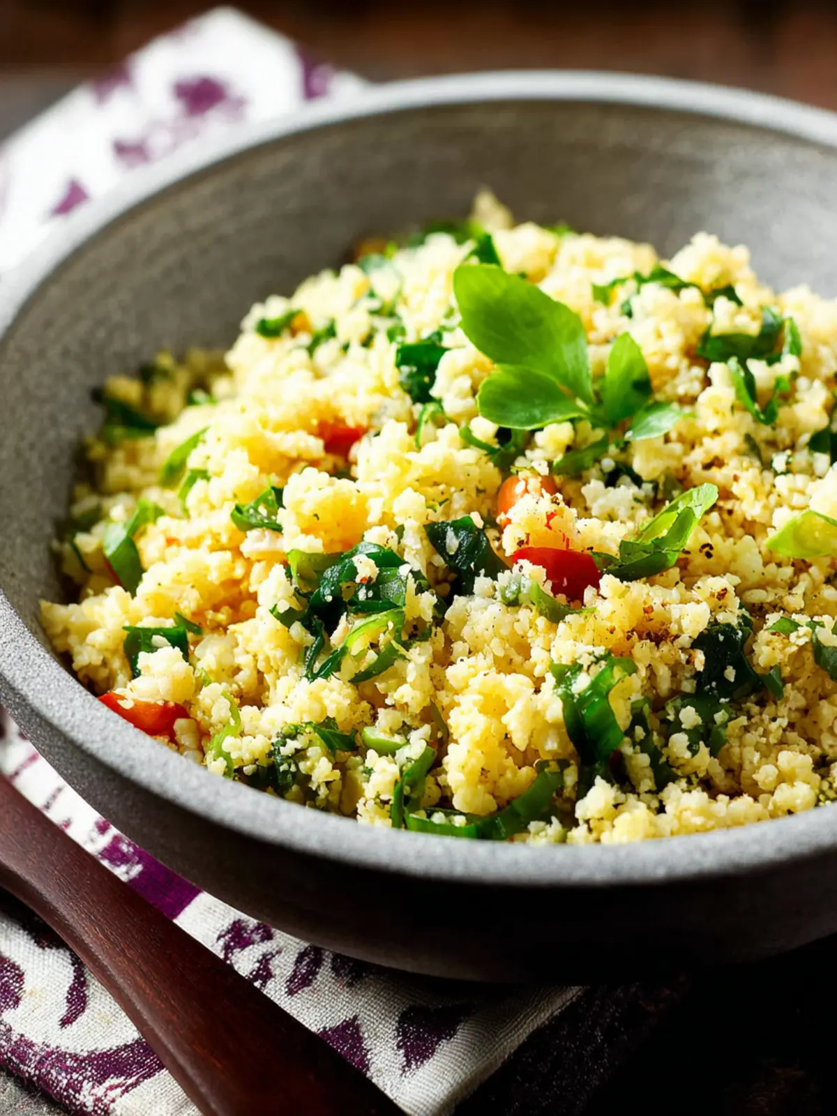 For something spiced and aromatic, sprinkle in some curry powder while sautéing your cauliflower. You could also add peas and raisins for a hint of sweetness. This transforms your rice into a comforting and colorful dish that’s sure to impress.