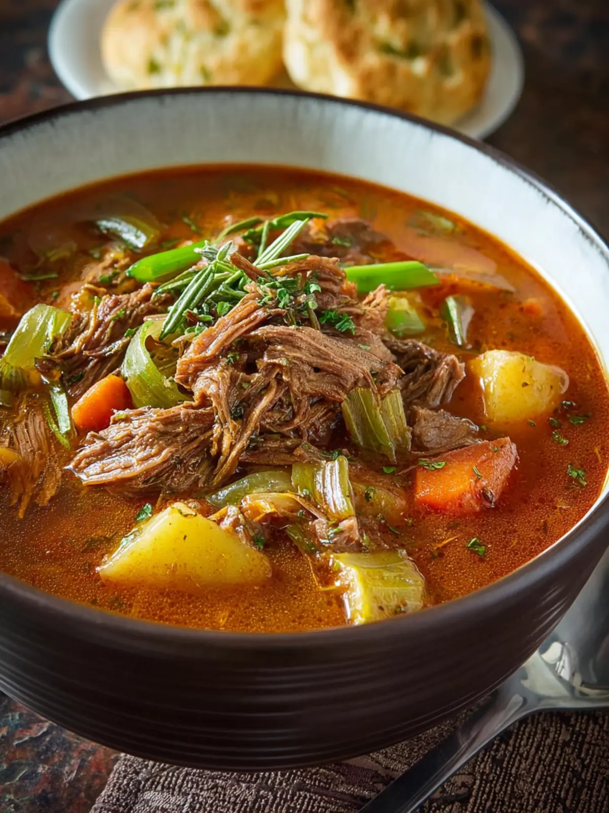 Enjoy the delightful warmth of Mississippi Pot Roast Soup!