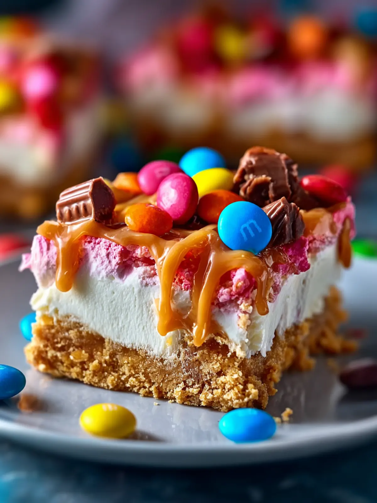 • Crowd-Pleaser: Whether it’s a picnic, potluck, or just a cozy night in, these bars are sure to impress. Who can resist the allure of cheesecake and candy in one delectable treat?