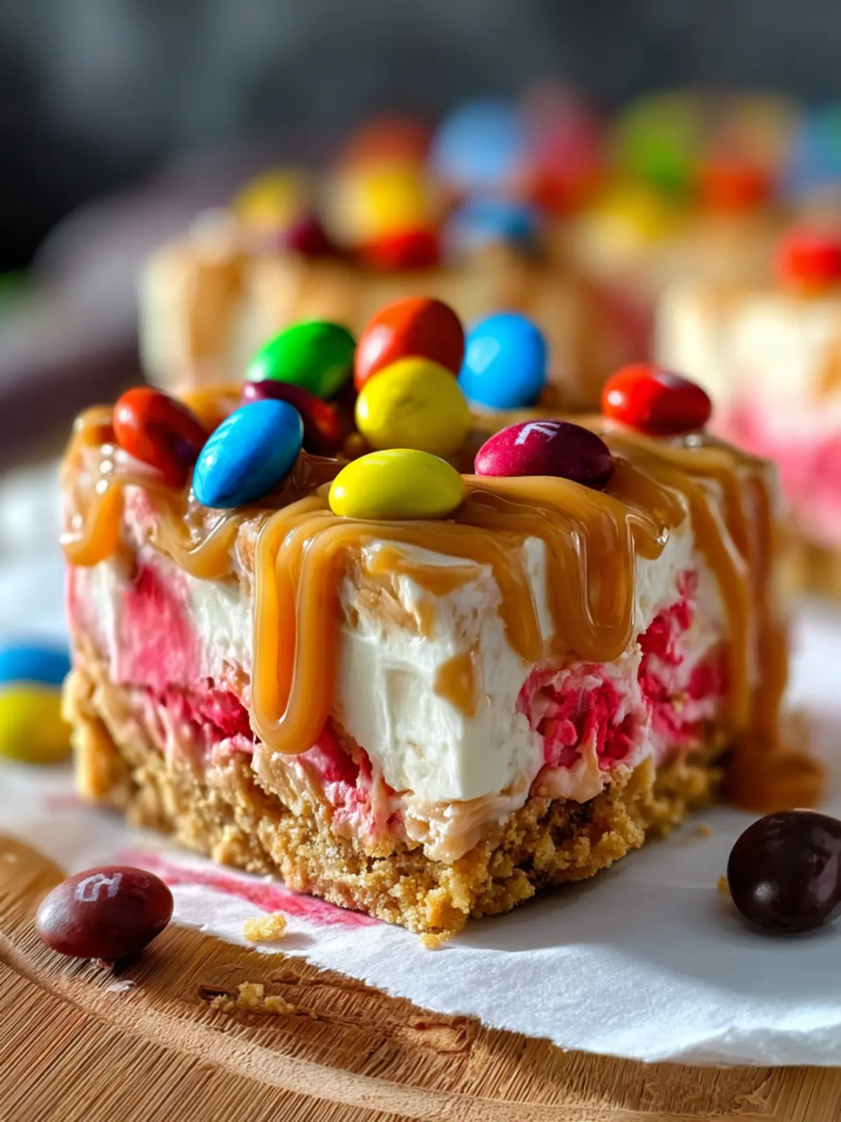 No-Bake M&M’s Caramel Cheesecake Bars – Easy Creamy Dessert Recipe First Image
