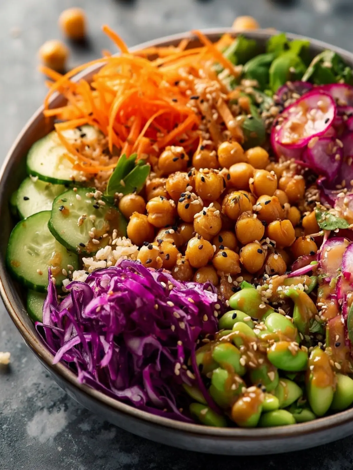 These ingredients come together to create a mouthwatering peanut chickpea Buddha bowl that’s not only delicious but also nourishing, making it perfect for lunch or dinner.