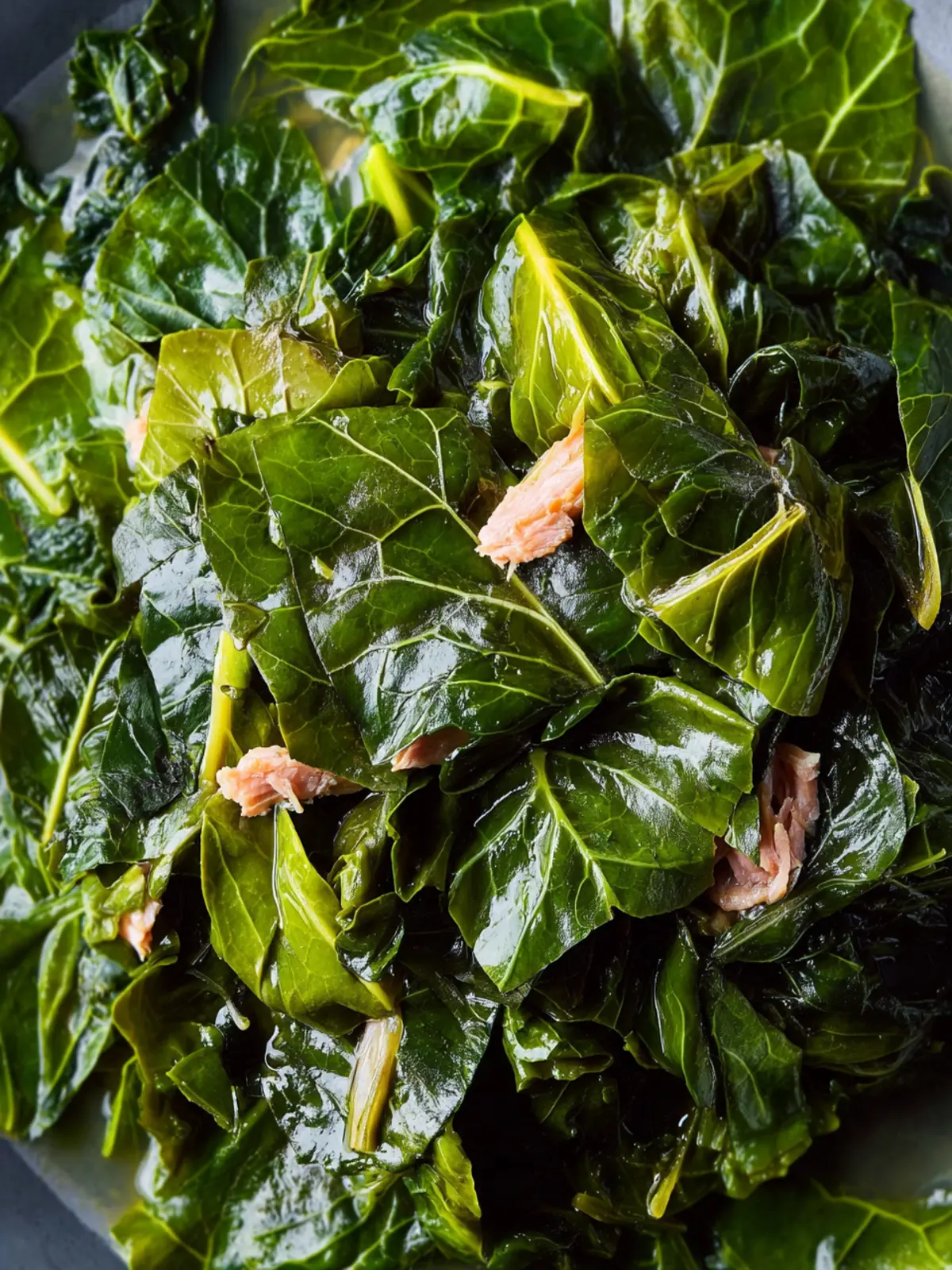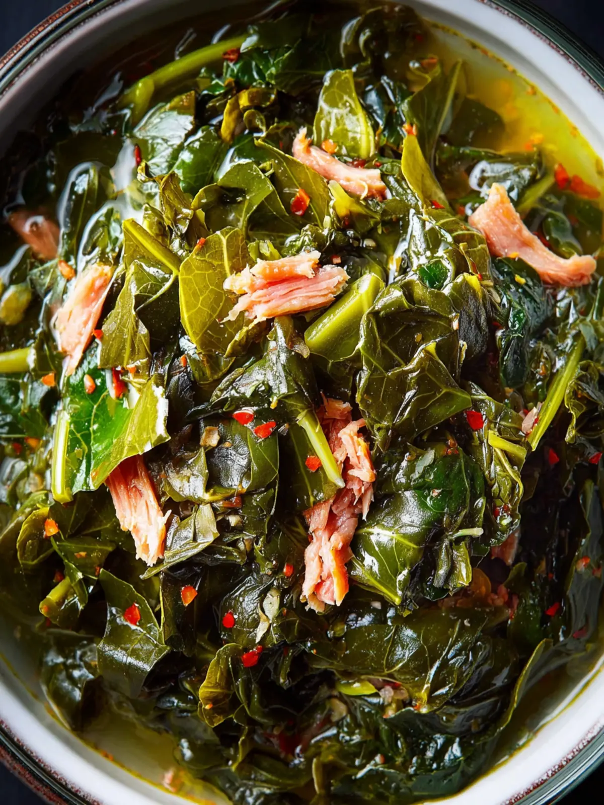 A delicious and hearty dish made with collard greens and smoked turkey, perfect for a nutritious meal.