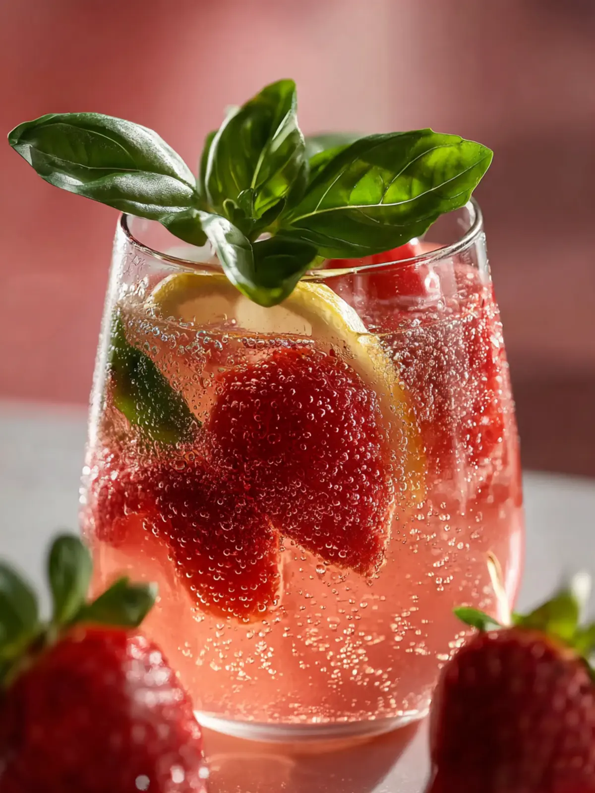 - Garnish each glass with a fresh strawberry slice, a lemon wheel, or a small sprig of fresh basil.