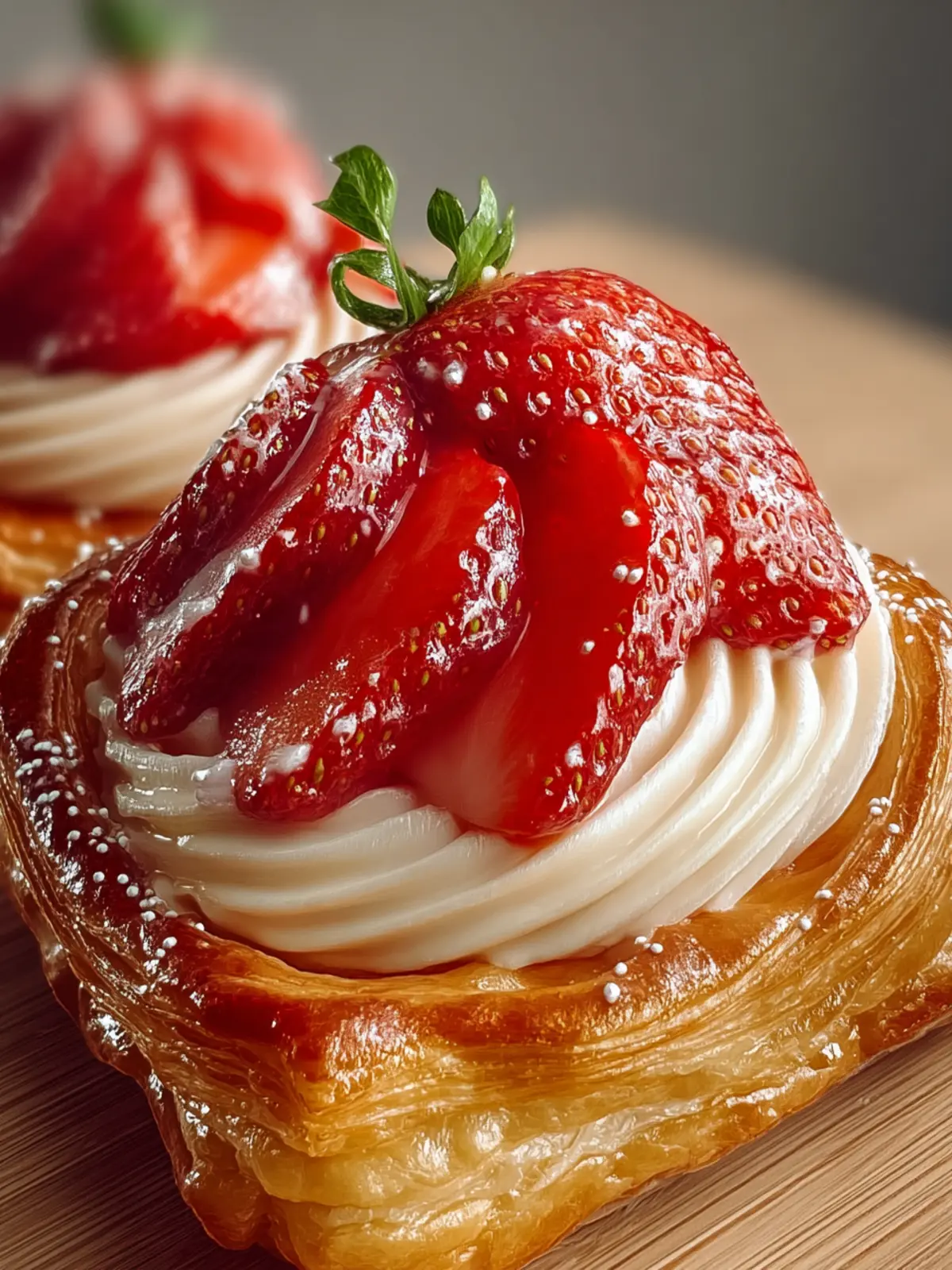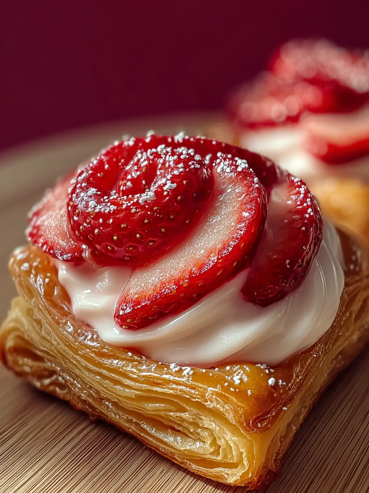 Delicious puff pastry filled with a creamy mixture of cream cheese, sugar, and fresh strawberries.