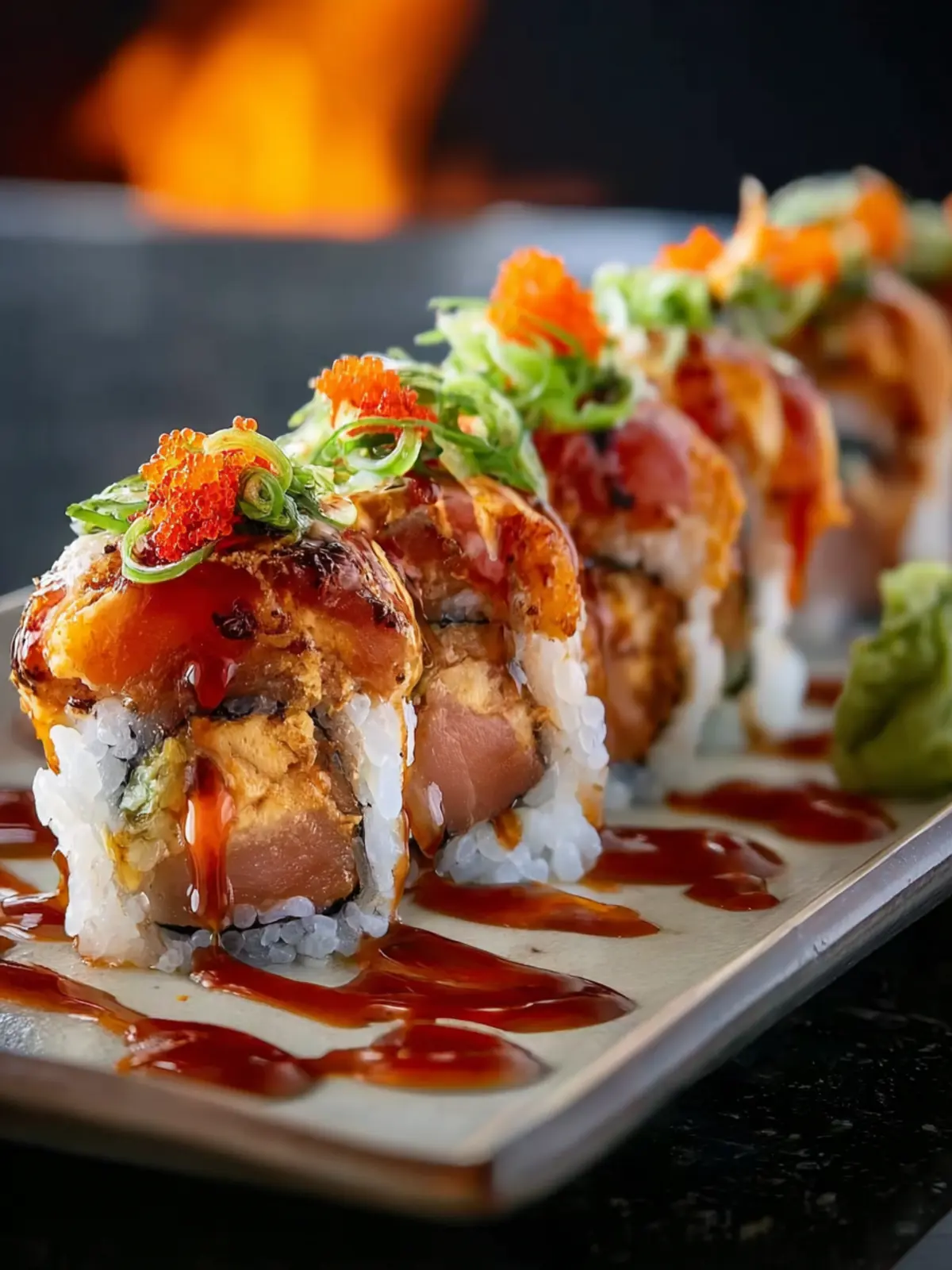 The Volcano Roll stands out in the world of sushi primarily due to its bold flavors and dynamic presentation. Here’s what makes it a must-try: